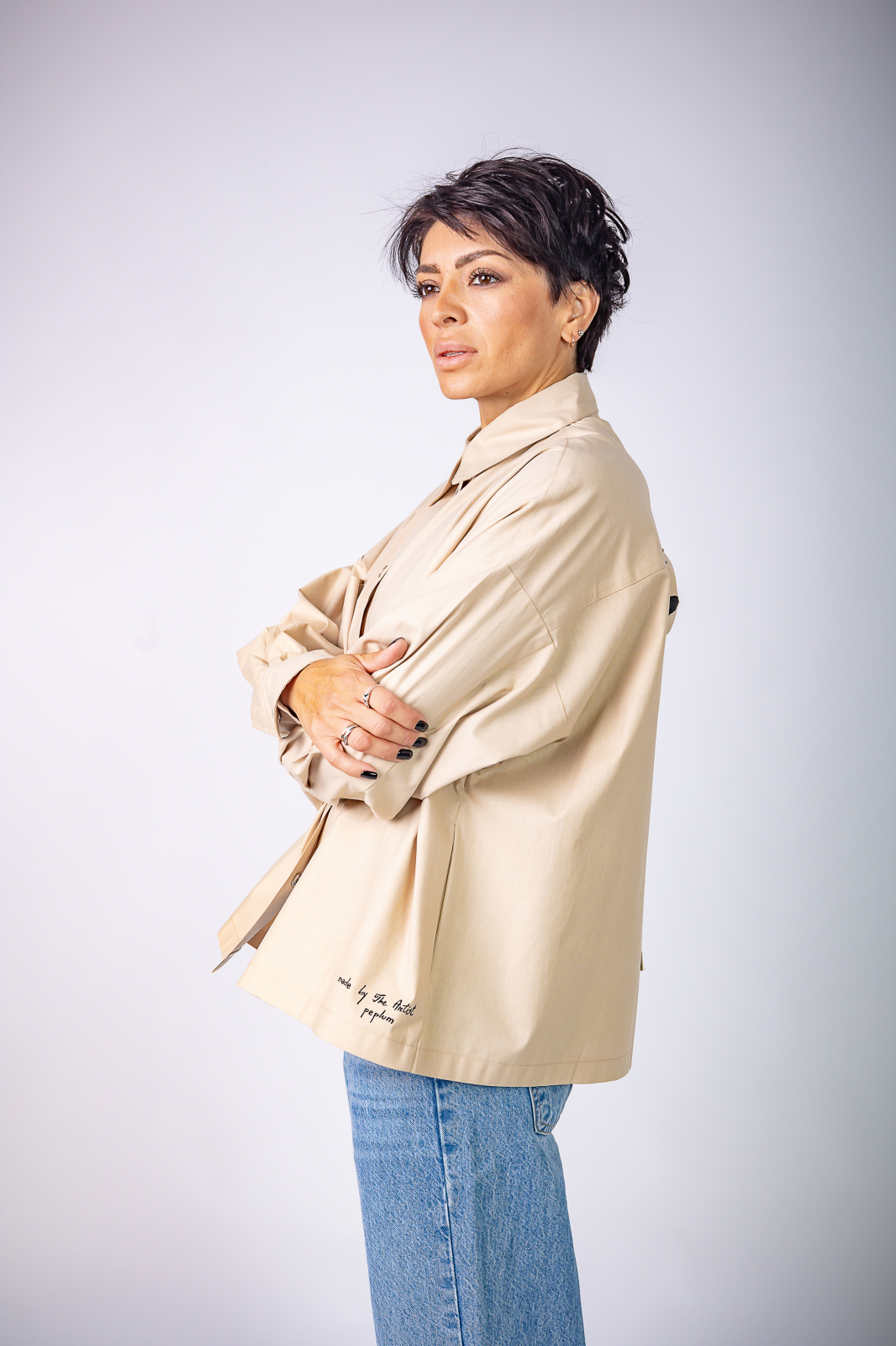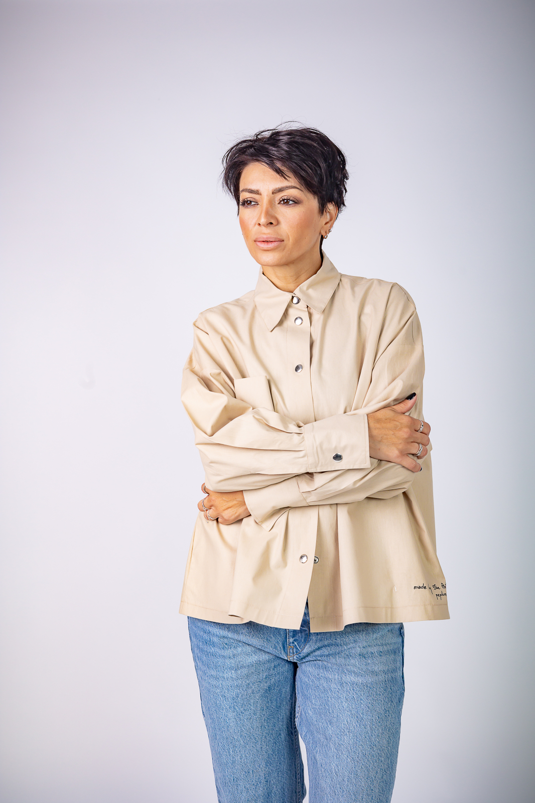 Camasa din bumbac 100% cu o croiala lejera si guler si mansete clasice, pentru o atitudine moderna si relaxata. Cu o abordare urbana si versatila, camasa Peplum Clothing imbraca femeia moderna oferindu-i rasfat pielii. Unicitatea piesei realizata cu migala, pictata manual de artistii nostrii vizuali, precum si conceptul nostru de a realiza piese vestimentare practice, ne-au indreptat catre o prindere functionala cu capse metalice cu capac din plastic, alese in contrast dinamic cu suportul textil.