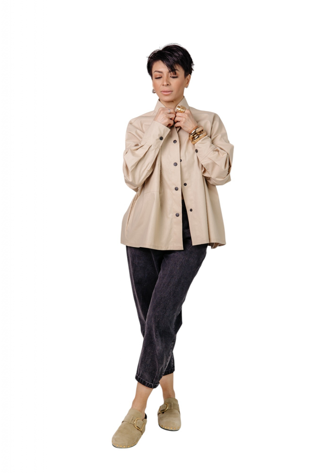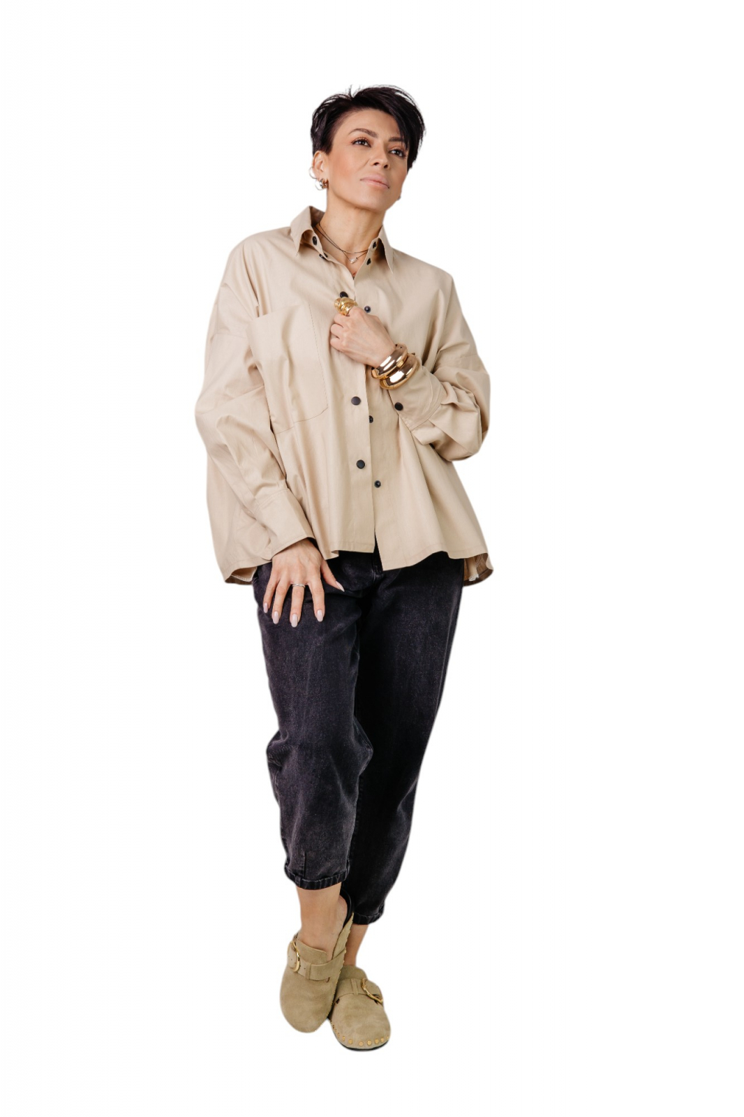 Camasa din bumbac 100% cu o croiala lejera si guler si mansete clasice, pentru o atitudine moderna si relaxata. Cu o abordare urbana si versatila, camasa Peplum Clothing imbraca femeia moderna oferindu-i rasfat pielii. Unicitatea piesei realizate cu migala precum si conceptul nostru de a crea piese vestimentare practice, ne-au indreptat catre o prindere in capse, capse metalice cu capac din plastic, alese in contrast dinamic cu suportul textil. Partea din spate este desfacuta si dublata de o capa scurta.  Accesoriul metalic atasat pe spatele camasii iti permite sa creezi noi abordari prin atasarea a diverse panglici, sireturi, orice te poarta  imaginatia. Accesoriile expuse in imagine sunt parte din produs si sunt realizate manual in atelierul nostru.