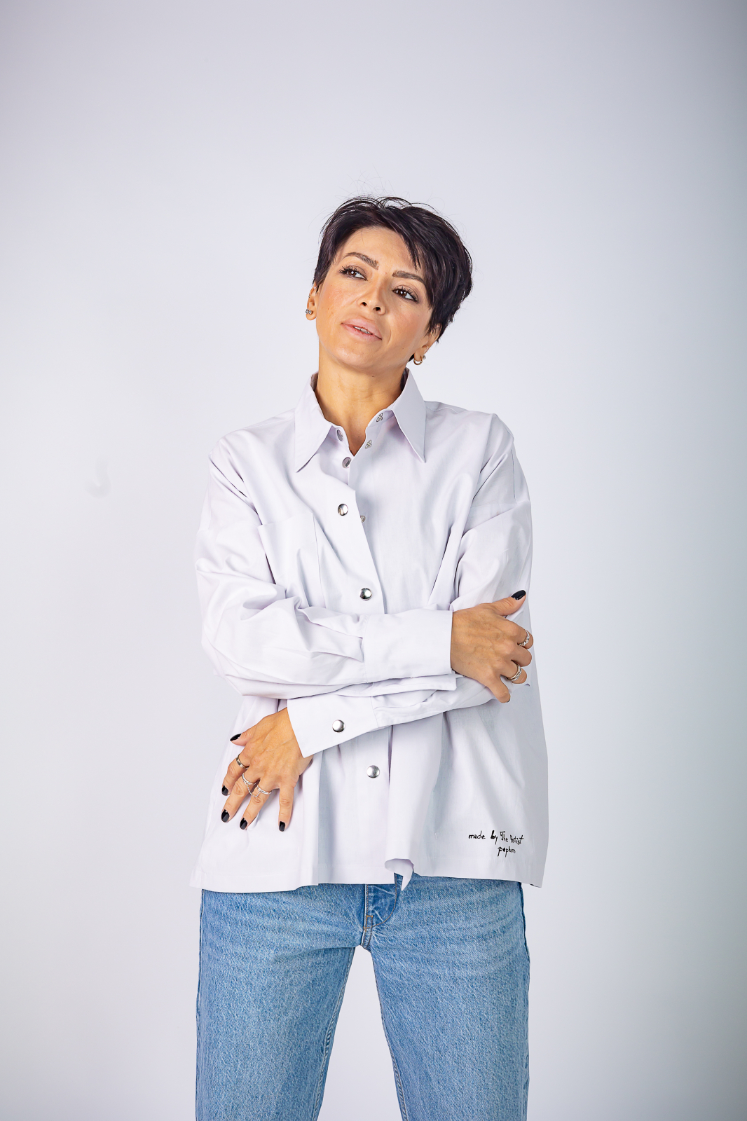 Camasa din bumbac 100% cu o croiala lejera si guler si mansete clasice, pentru o atitudine moderna si relaxata. Cu o abordare urbana si versatila, camasa Peplum Clothing imbraca femeia moderna oferindu-i rasfat pielii. Unicitatea piesei realizata cu migala, pictata manual de artistii nostrii vizuali, precum si conceptul nostru de a realiza piese vestimentare practice, ne-au indreptat catre o prindere functionala cu capse metalice cu capac din plastic, alese in contrast dinamic cu suportul textil.