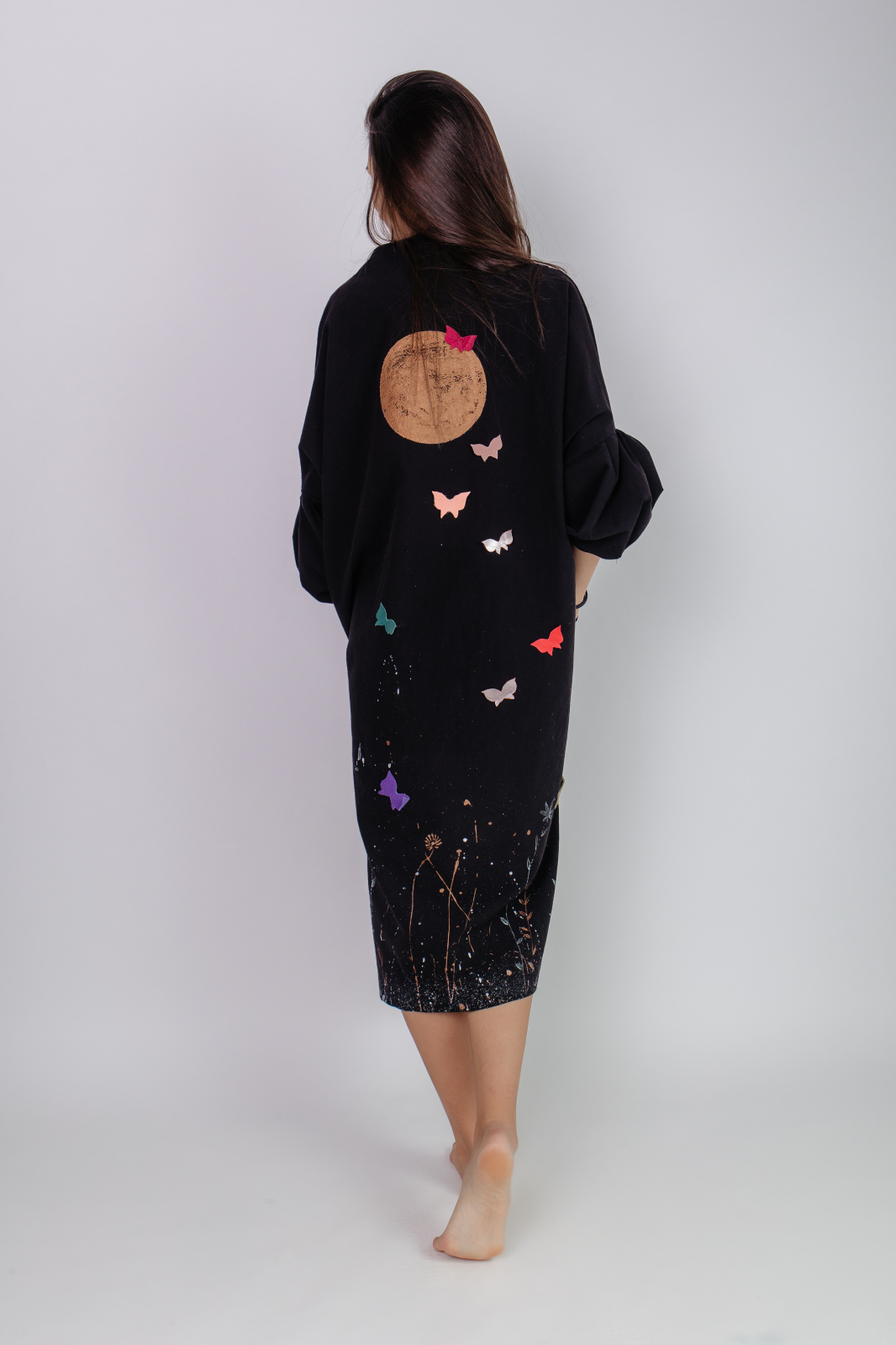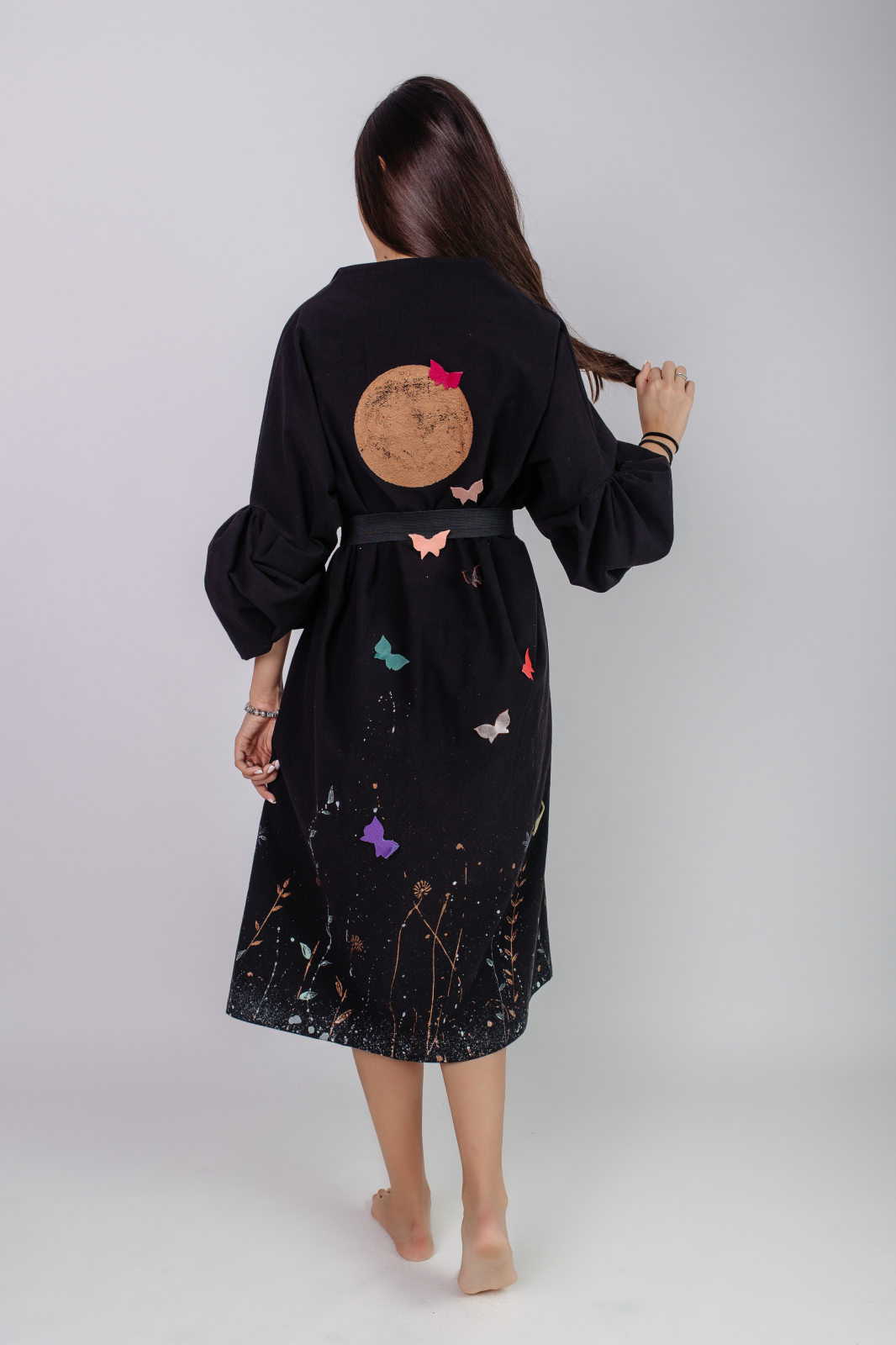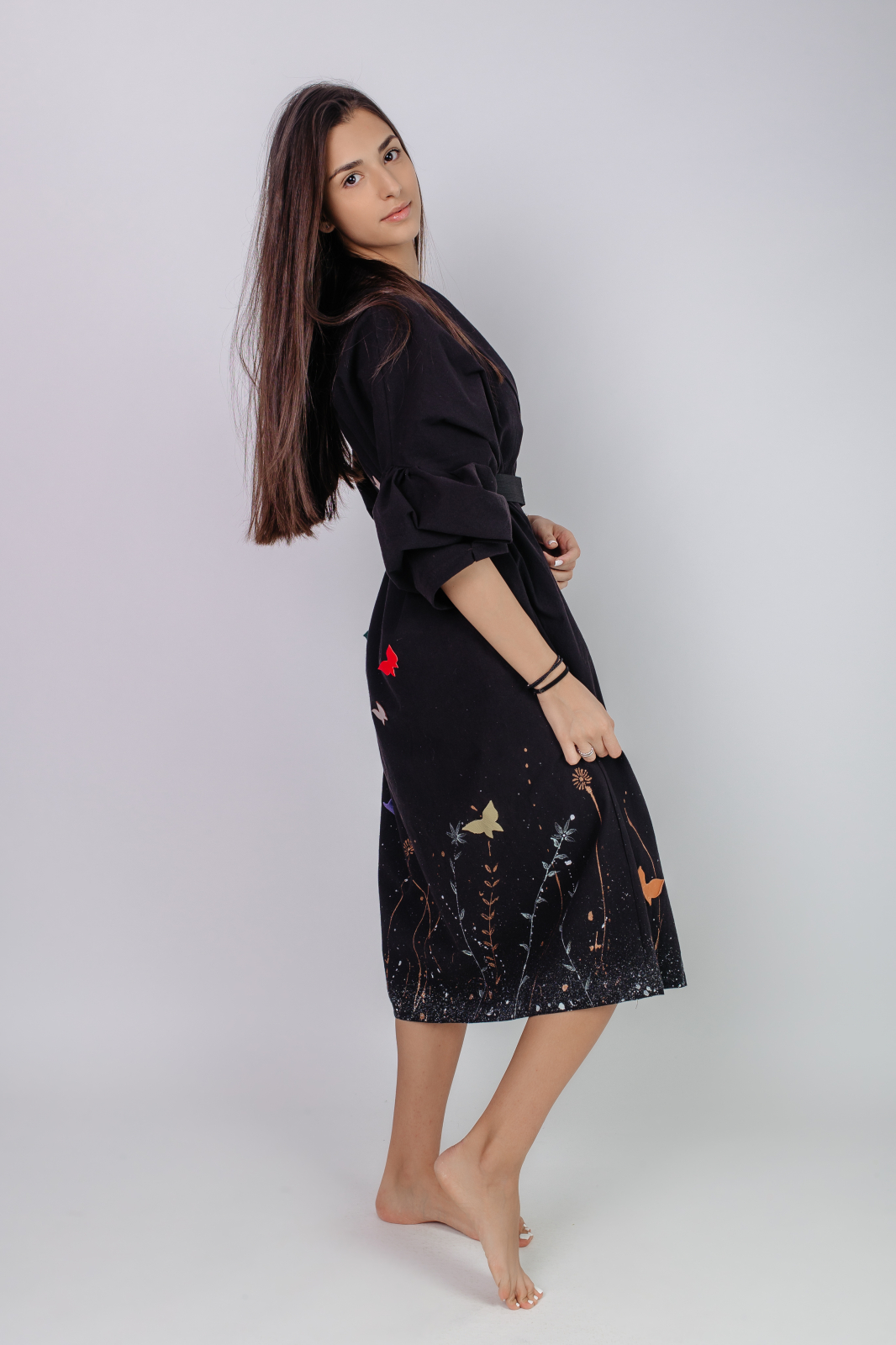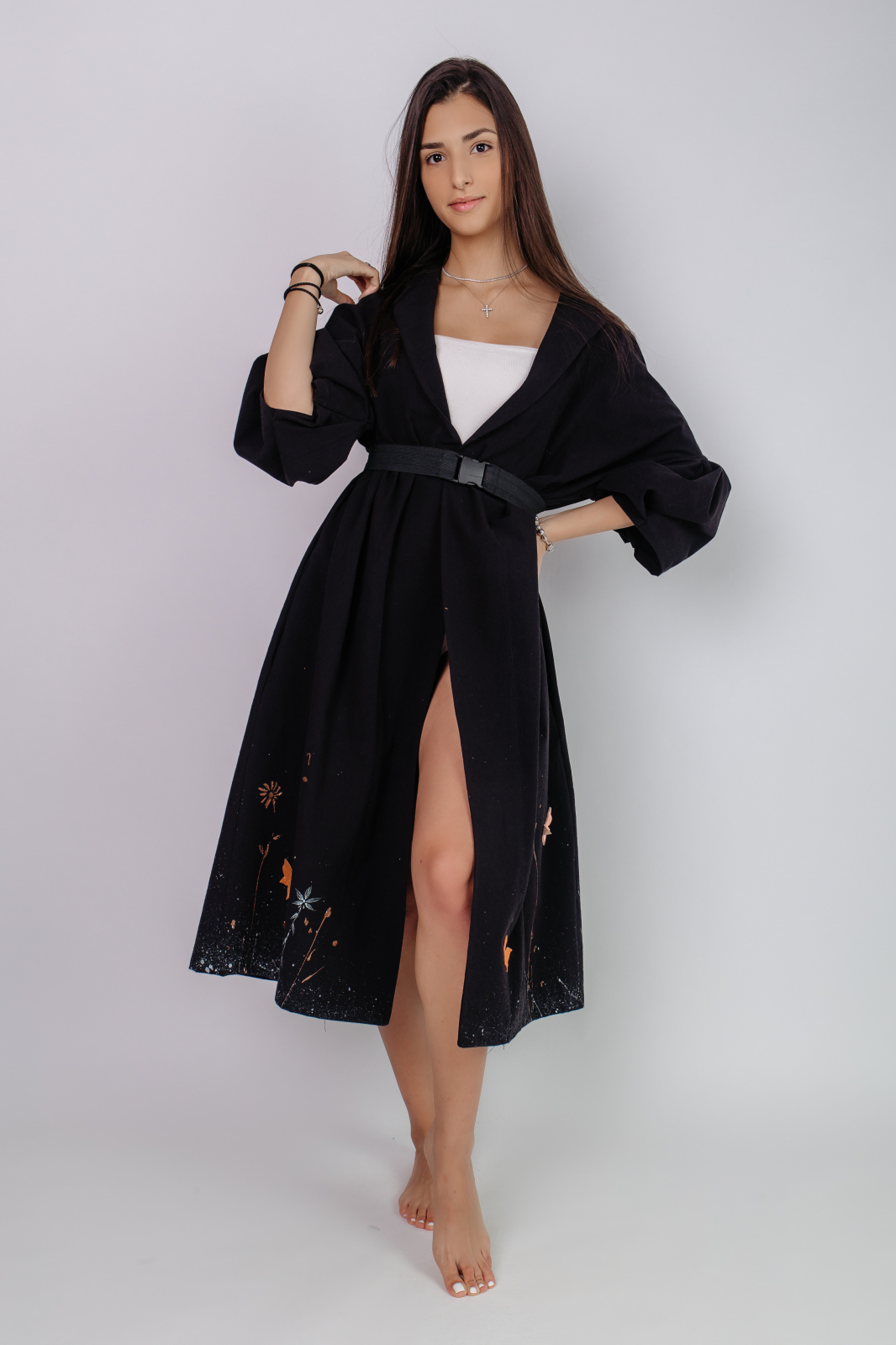 Piesa vestimentara versatila, creata sa- ti imbrace trupul si starea de spirit, pentru orice moment sau eveniment din viata ta. Gandit cu pasiunea unui designer si daruirea de stare a unui pictor, aceasta piesa vine sa ti completeze tinuta, desfasurat pe trup, ori sa iti fie rochie ce iti cuprinde talia cu o curea, sau chiar lejer, de casa, in zilele in care vrei sa te simti rasfatata si speciala.